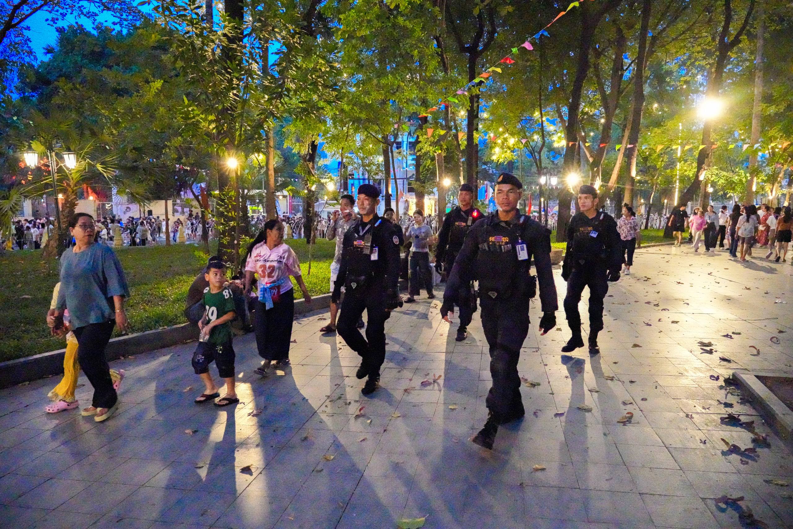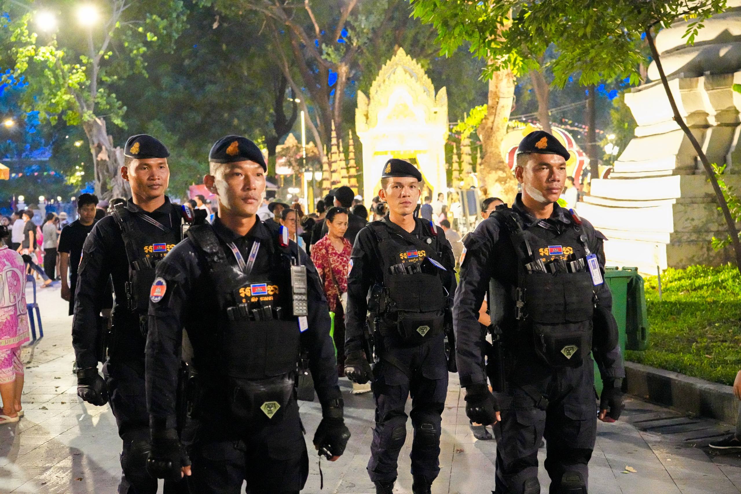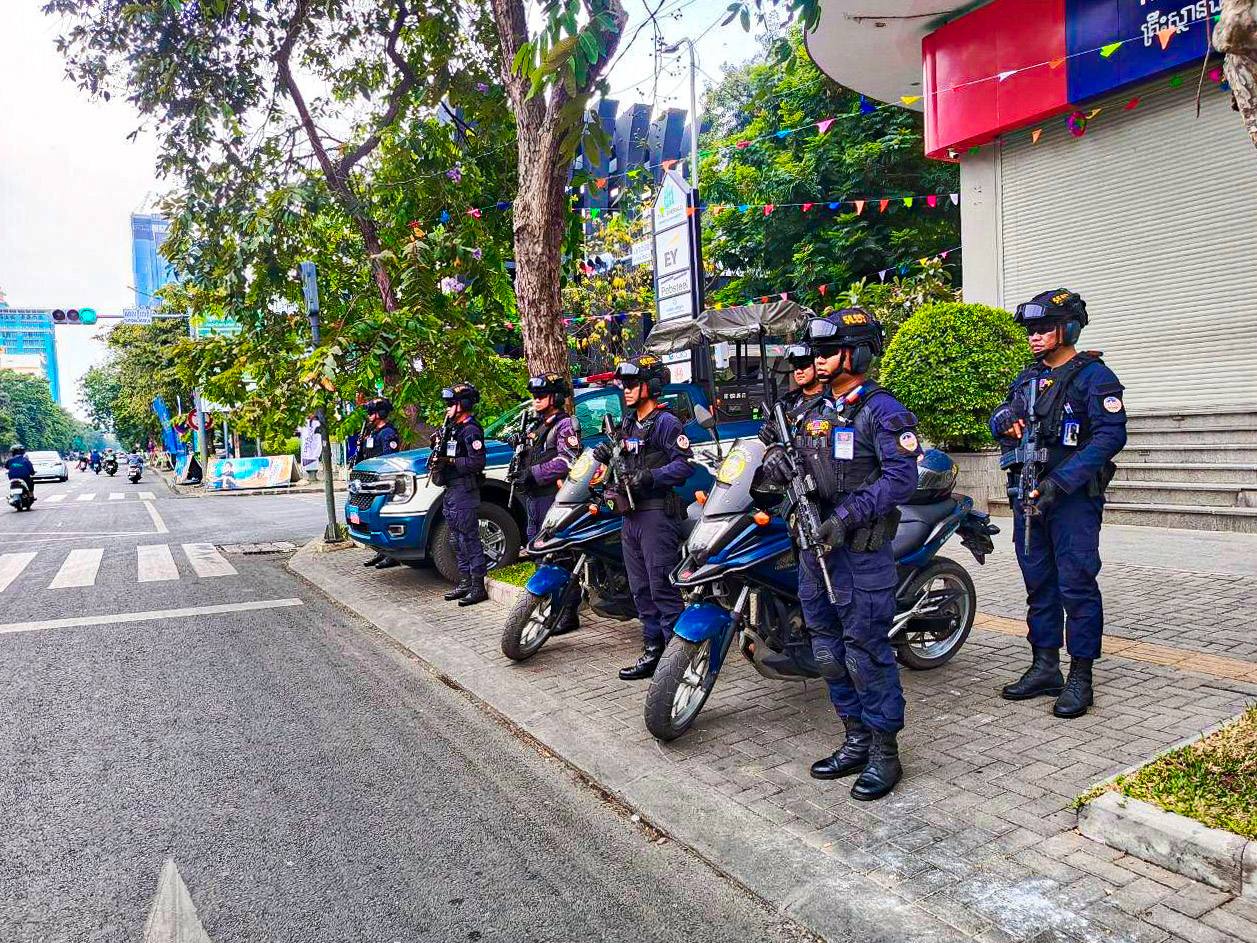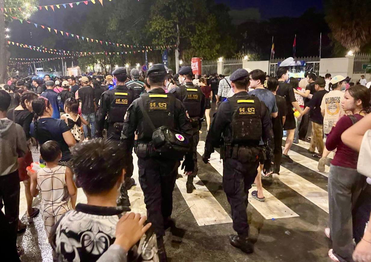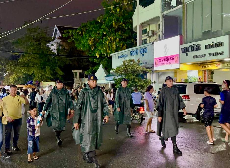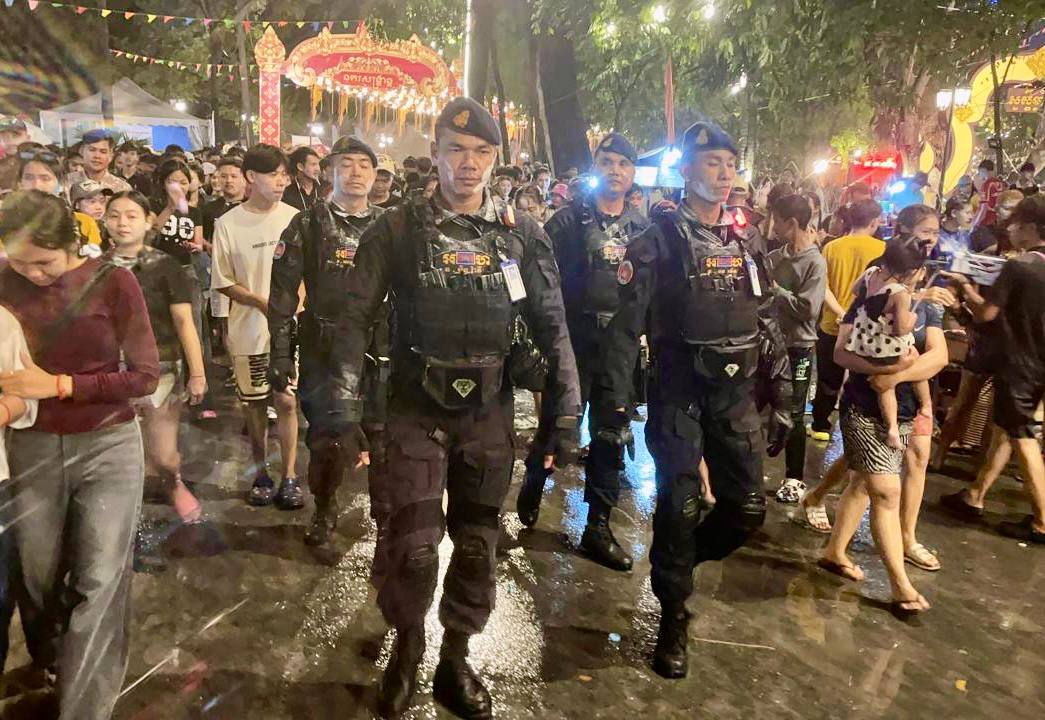 (ភ្នំពេញ)៖ នាថ្ងៃទី១៩ ខែមេសា ឆ្នាំ២០២៦ កម្លាំងកងរាជអាវុធហត្ថរាជធានីភ្នំពេញ បានបន្តចូលរួមជាមួយសមត្ថកិច្ចចម្រុះ ធ្វើការល្បាត ការពារសន្តិសុខ សុវត្ថិភាព រក្សាសណ្តាប់ធ្នាប់ និងសង្គ្រោះបន្ទាន់ ក្នុងថ្ងៃទី៥ នៃព្រឹត្តិការណ៍ នគរសង្ក្រាន្ត នាឱកាសពិធីបុណ្យចូលឆ្នាំថ្មី ប្រពៃណីជាតិខ្មែរ ទទួលបានការស្វាគមន៍យ៉ាងកក់ក្តៅ និងស្និទស្នាលពី បងប្អូនប្រជាពលរដ្ឋ ក៏ដូចជាភ្ញៀវទេសចរណ៍ ដែលមកចូលរួមទស្សនានៅតាមបណ្តាទីតាំងនានាដែលបានរៀបចំពិធីកំសាន្តសប្បាយ ក្នុងភូមិសាស្ត្ររាជធានីភ្នំពេញ ប្រកបដោយមោទនភាព និងស្មារតីទទួលខុសត្រូវបំផុត។