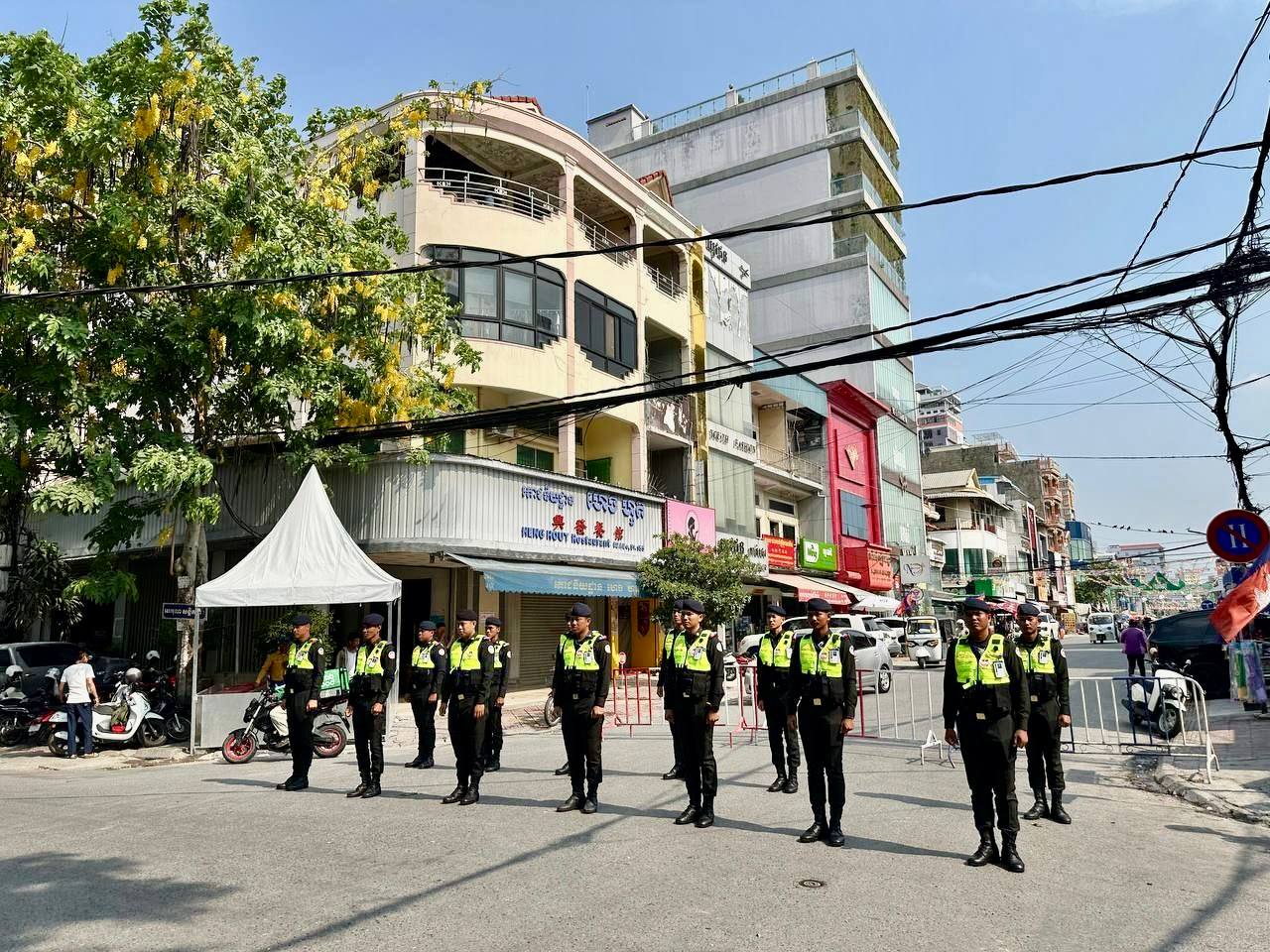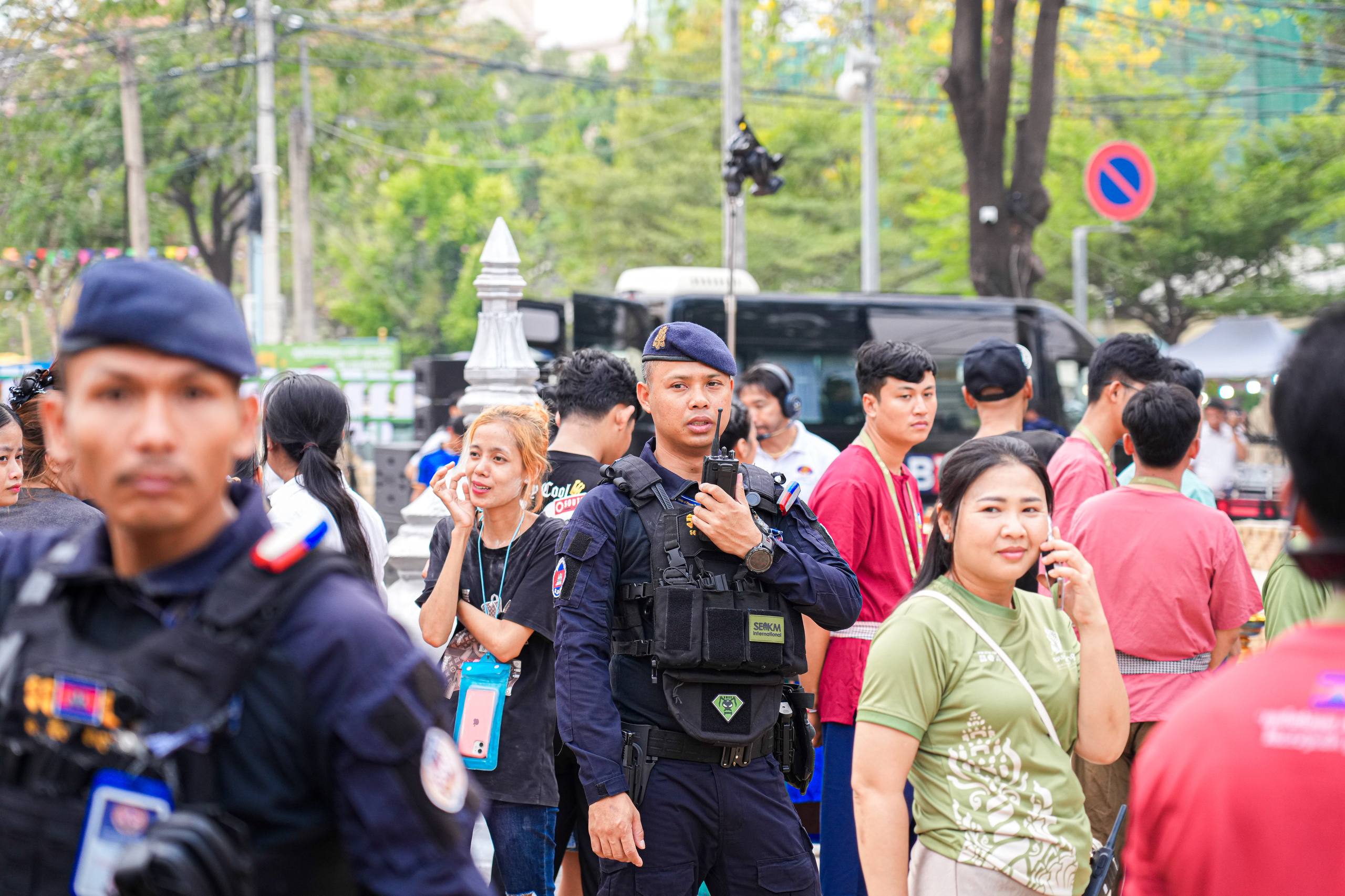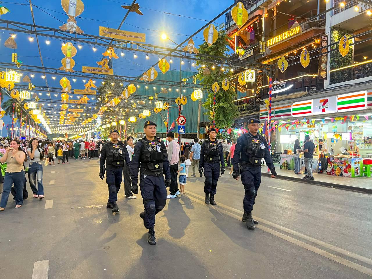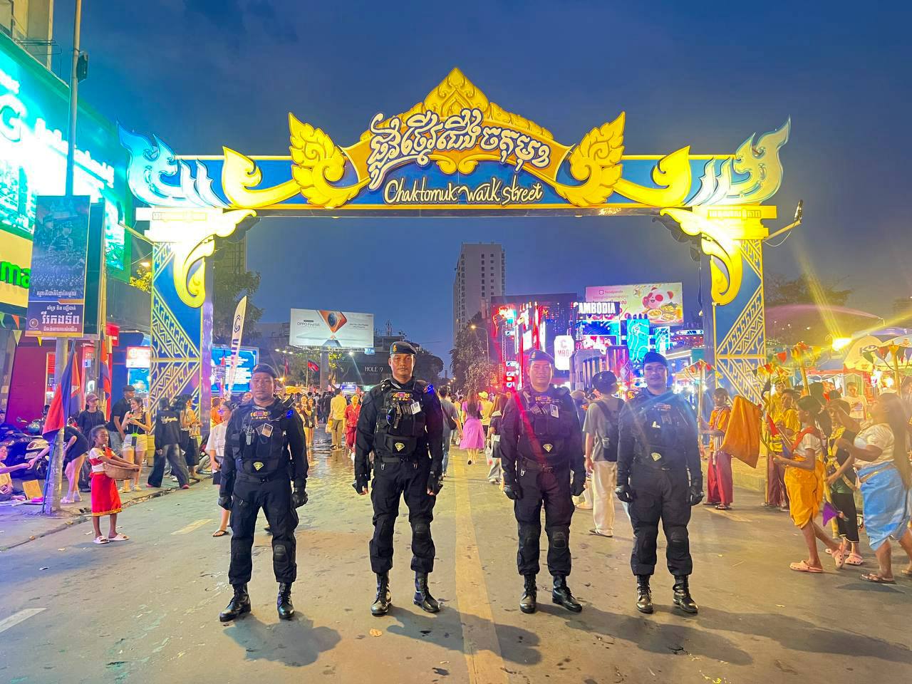 (ភ្នំពេញ)៖ នាថ្ងៃទី១៩ ខែមេសា ឆ្នាំ២០២៦ កម្លាំងកងរាជអាវុធហត្ថរាជធានីភ្នំពេញ បានបន្តចូលរួមជាមួយសមត្ថកិច្ចចម្រុះ ធ្វើការល្បាត ការពារសន្តិសុខ សុវត្ថិភាព រក្សាសណ្តាប់ធ្នាប់ និងសង្គ្រោះបន្ទាន់ ក្នុងថ្ងៃទី៥ នៃព្រឹត្តិការណ៍ នគរសង្ក្រាន្ត នាឱកាសពិធីបុណ្យចូលឆ្នាំថ្មី ប្រពៃណីជាតិខ្មែរ ទទួលបានការស្វាគមន៍យ៉ាងកក់ក្តៅ និងស្និទស្នាលពី បងប្អូនប្រជាពលរដ្ឋ ក៏ដូចជាភ្ញៀវទេសចរណ៍ ដែលមកចូលរួមទស្សនានៅតាមបណ្តាទីតាំងនានាដែលបានរៀបចំពិធីកំសាន្តសប្បាយ ក្នុងភូមិសាស្ត្ររាជធានីភ្នំពេញ ប្រកបដោយមោទនភាព និងស្មារតីទទួលខុសត្រូវបំផុត។