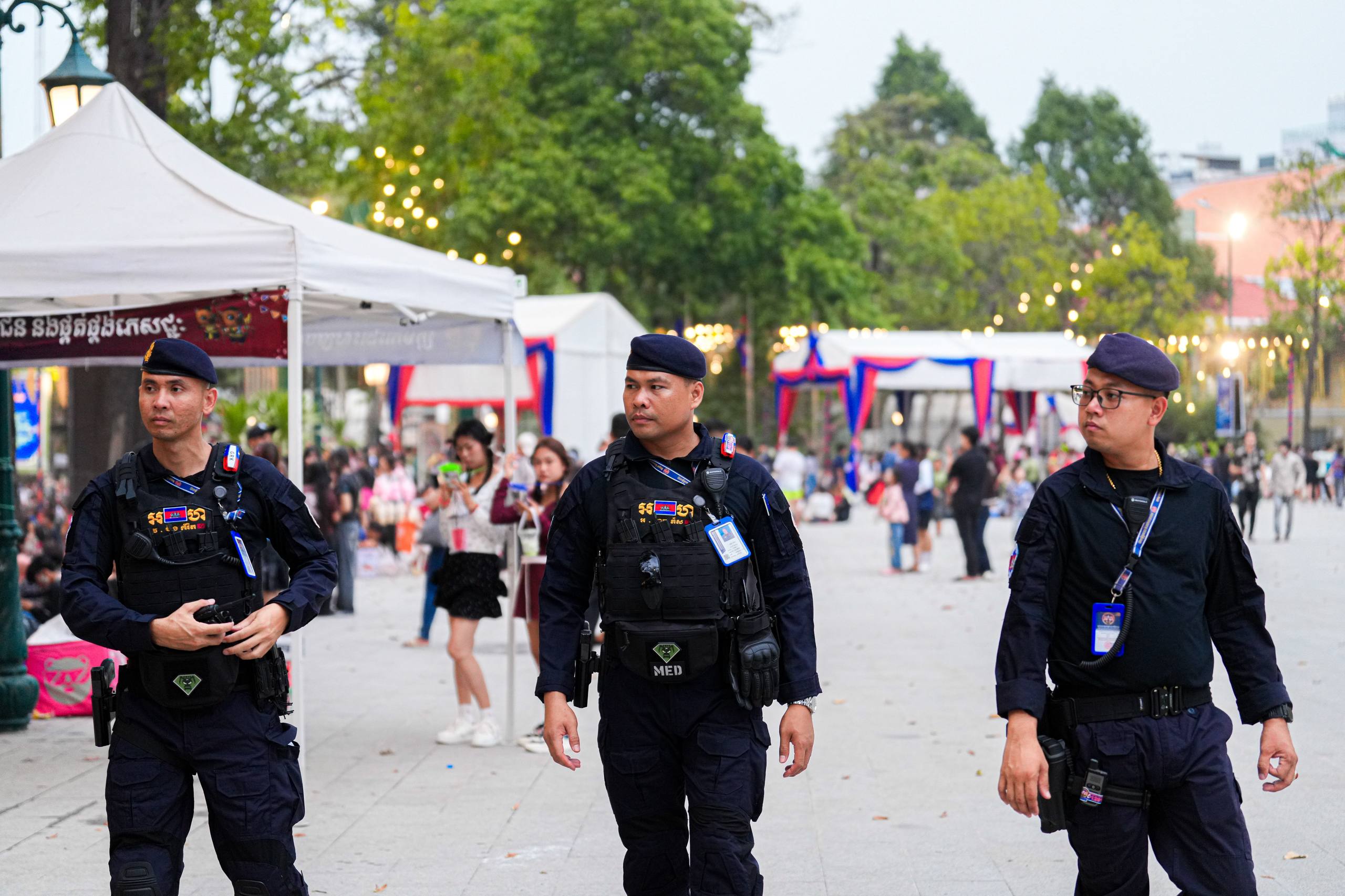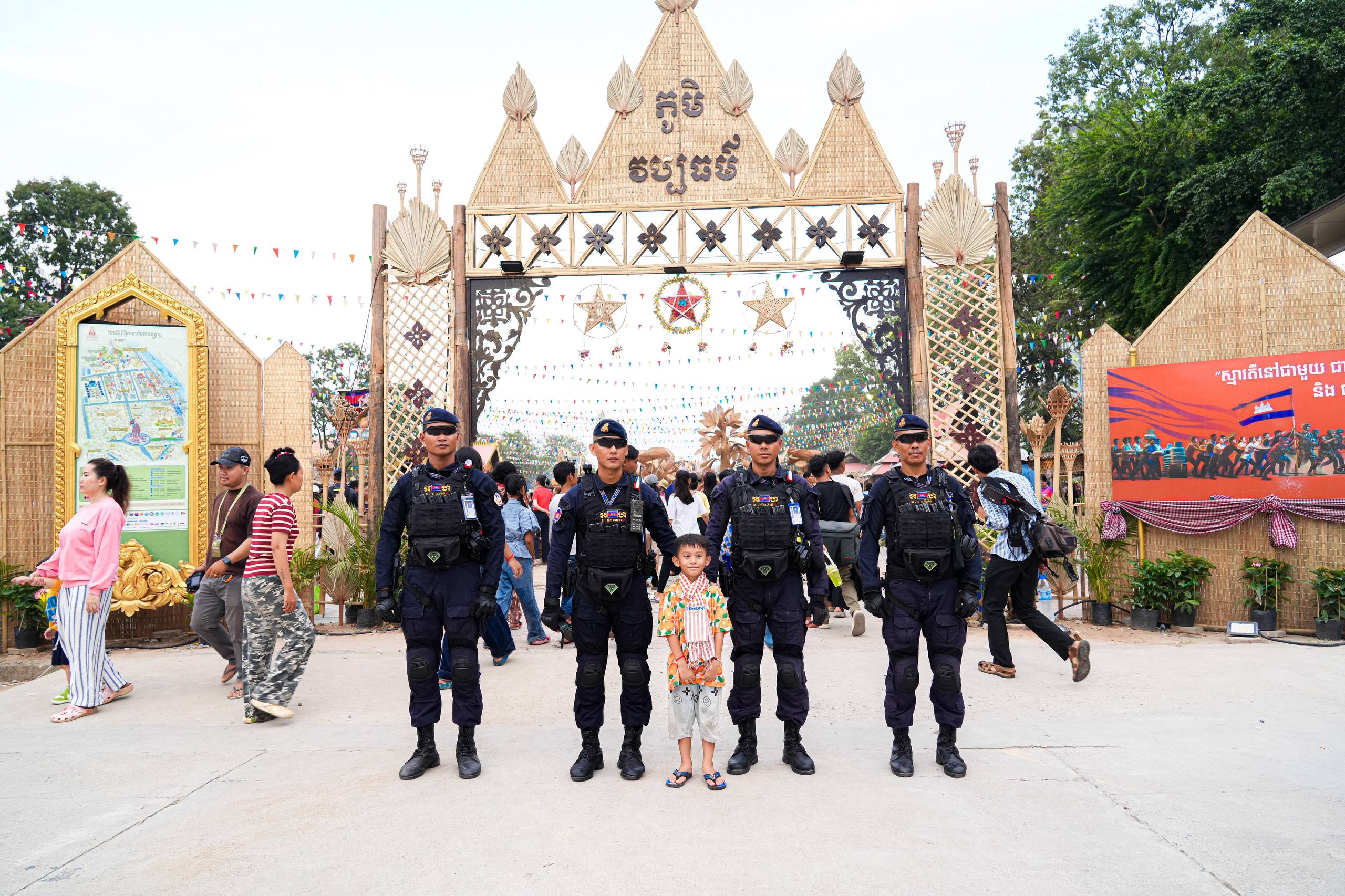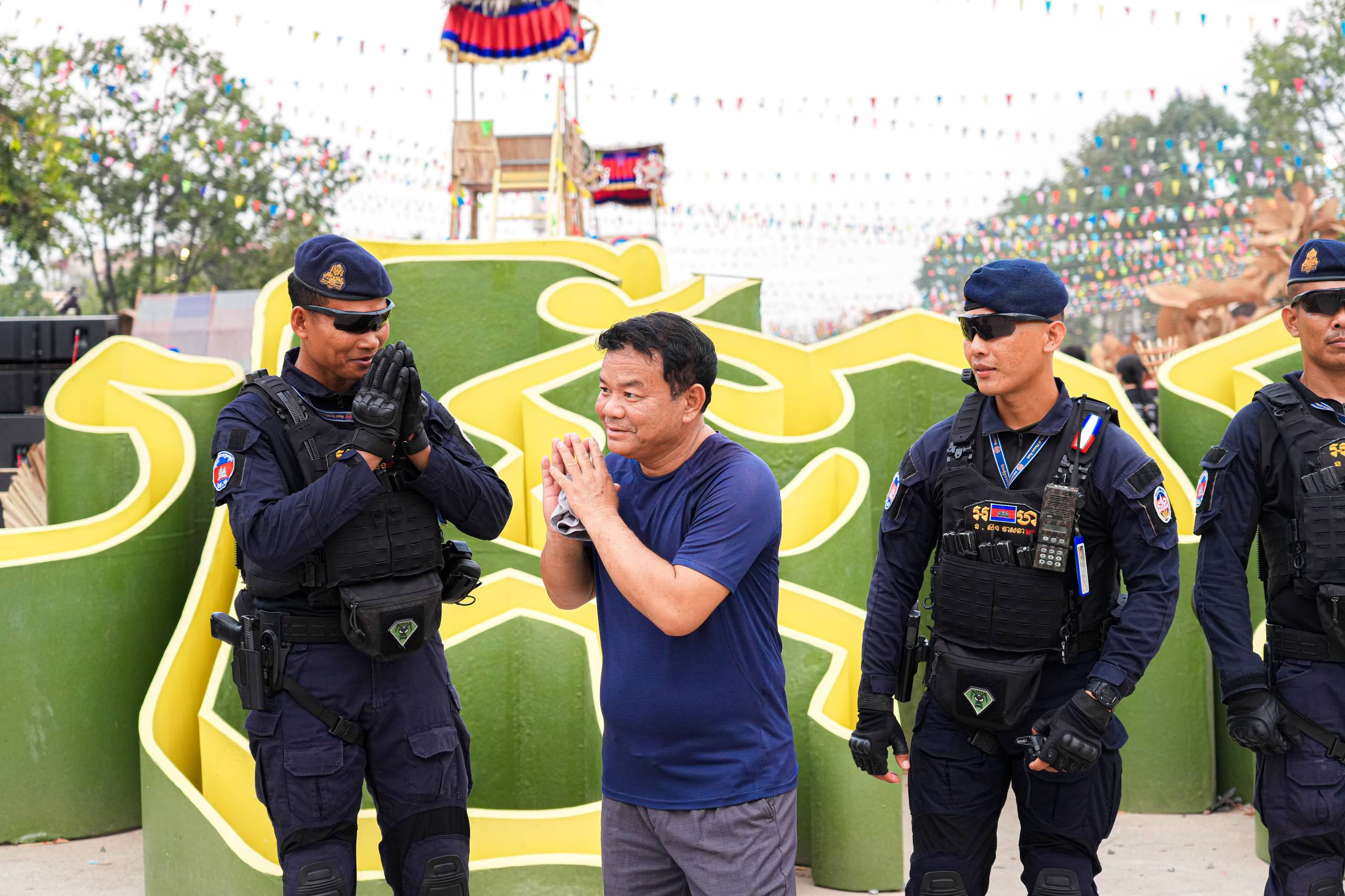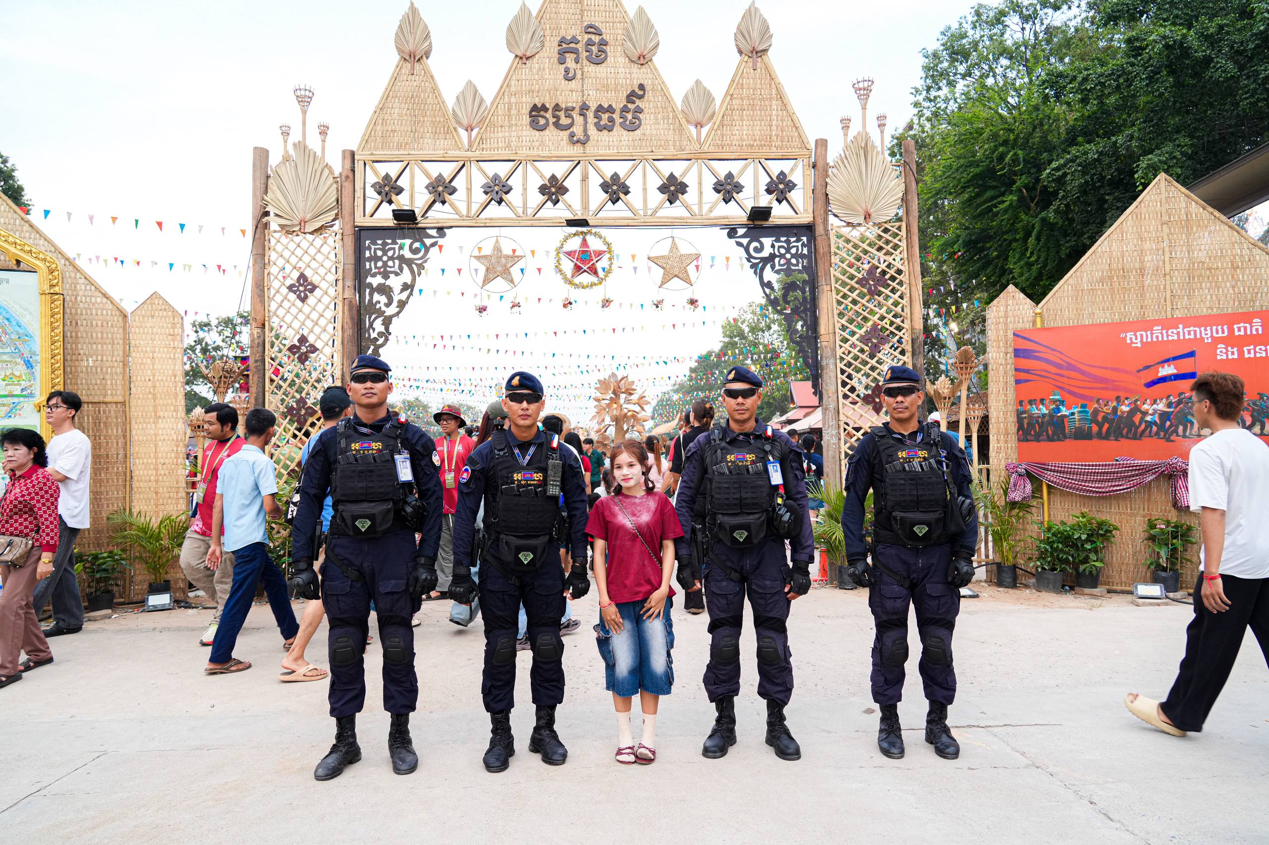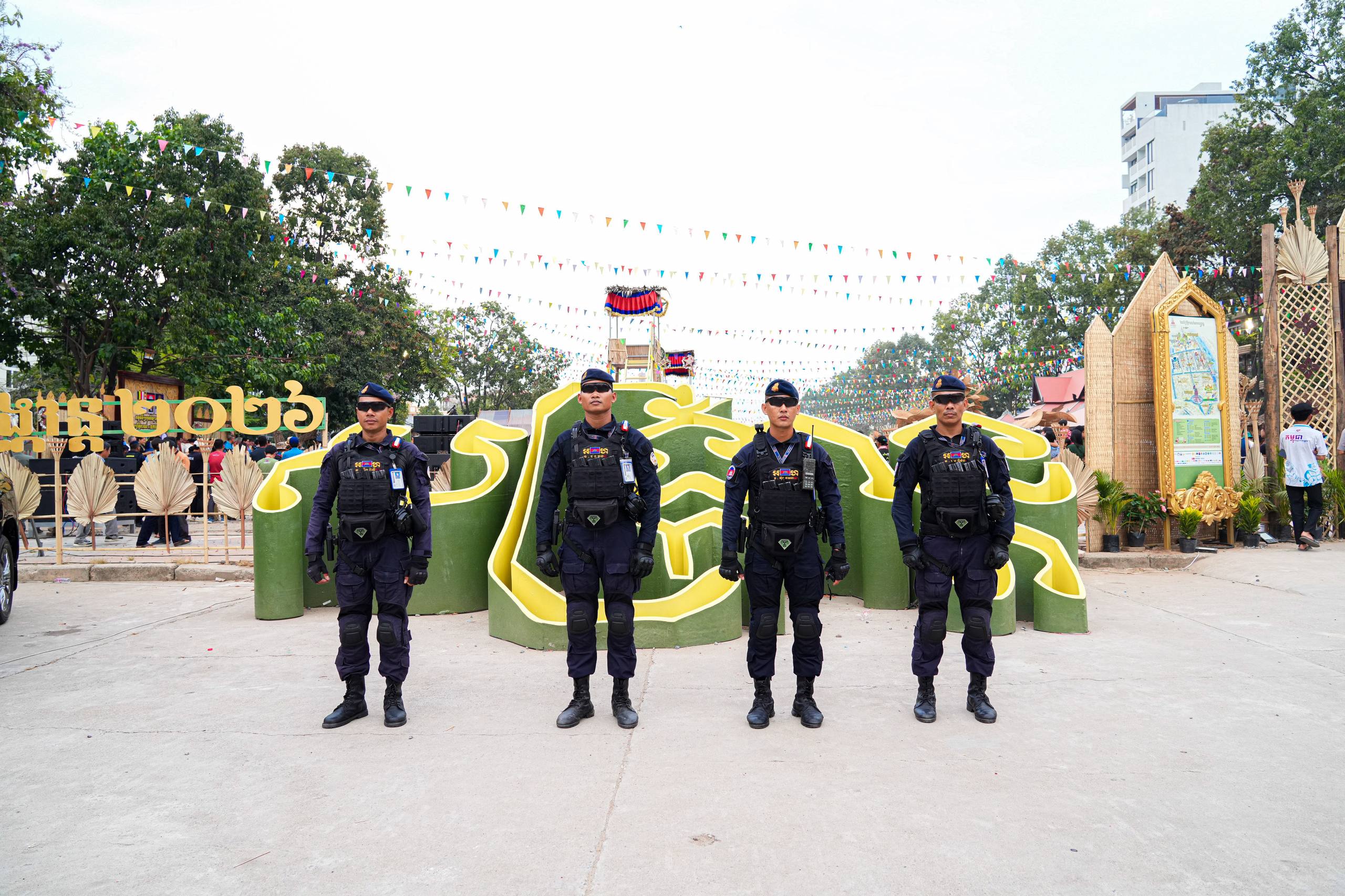 (ភ្នំពេញ)៖ នាថ្ងៃទី១៩ ខែមេសា ឆ្នាំ២០២៦ កម្លាំងកងរាជអាវុធហត្ថរាជធានីភ្នំពេញ បានបន្តចូលរួមជាមួយសមត្ថកិច្ចចម្រុះ ធ្វើការល្បាត ការពារសន្តិសុខ សុវត្ថិភាព រក្សាសណ្តាប់ធ្នាប់ និងសង្គ្រោះបន្ទាន់ ក្នុងថ្ងៃទី៥ នៃព្រឹត្តិការណ៍ នគរសង្ក្រាន្ត នាឱកាសពិធីបុណ្យចូលឆ្នាំថ្មី ប្រពៃណីជាតិខ្មែរ ទទួលបានការស្វាគមន៍យ៉ាងកក់ក្តៅ និងស្និទស្នាលពី បងប្អូនប្រជាពលរដ្ឋ ក៏ដូចជាភ្ញៀវទេសចរណ៍ ដែលមកចូលរួមទស្សនានៅតាមបណ្តាទីតាំងនានាដែលបានរៀបចំពិធីកំសាន្តសប្បាយ ក្នុងភូមិសាស្ត្ររាជធានីភ្នំពេញ ប្រកបដោយមោទនភាព និងស្មារតីទទួលខុសត្រូវបំផុត។